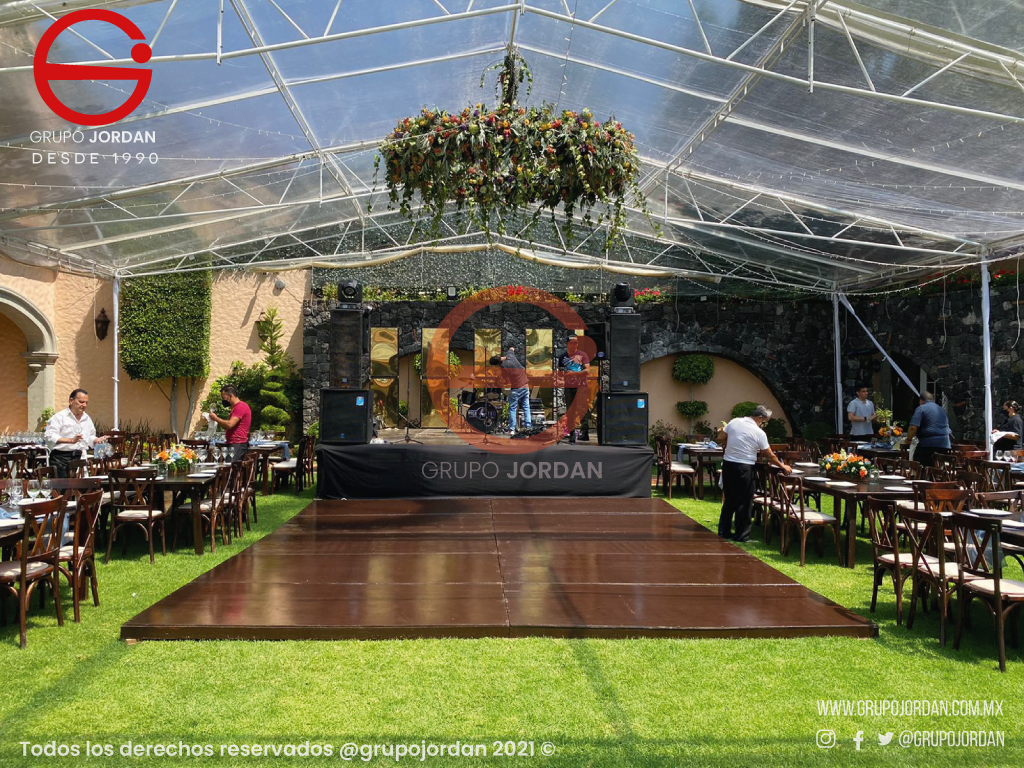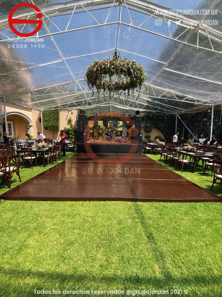 Nuestras tarimas en color chocolate, o disponibles para ser pintadas en otro color (o en charol blanco), son ideales para nivelar terrenos, ser montadas sobre pastos o improvisar una pista de baile sobre ellas.